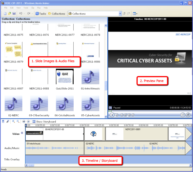 However I’ve found that the best way is to take screen shots. This has two benefits. First I get better image quality by taking my screenshots of the slides with SnagIt in .PNG format. And secondly, you can “fake” animations by incrementally capturing slides with bullet lists, etc. For example a slide with 3 bullet points would be captured with three screenshots – one for each bullet. This gives the appearance of animation in the video.