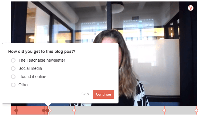 - Add quizzes – embed quizzes at specific moments in a video