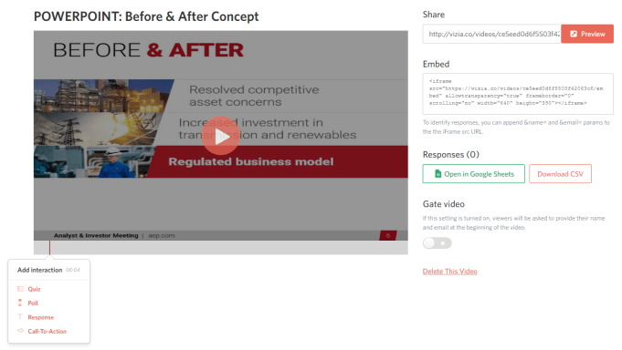 - When you’re finished adding all your interactive elements, you’ll want to take a look at the sharing options on the right and determine whether or not you want to collect the email addresses of anyone who views this video.