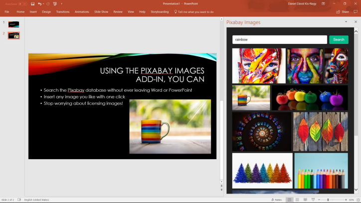 The newest PowerPoint add-in for stock photos is from Pixabay. One of the largest options for free photos, many of my photo quests leads me to Pixabay.