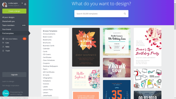 Fortunately, for all the non-designers among us, there are a number of newish tools that make it super easy for anyone to create professional looking graphic designs. These designs are light years ahead of the templates you’ll find in Microsoft Office and way more options to choose from for way more types of projects!