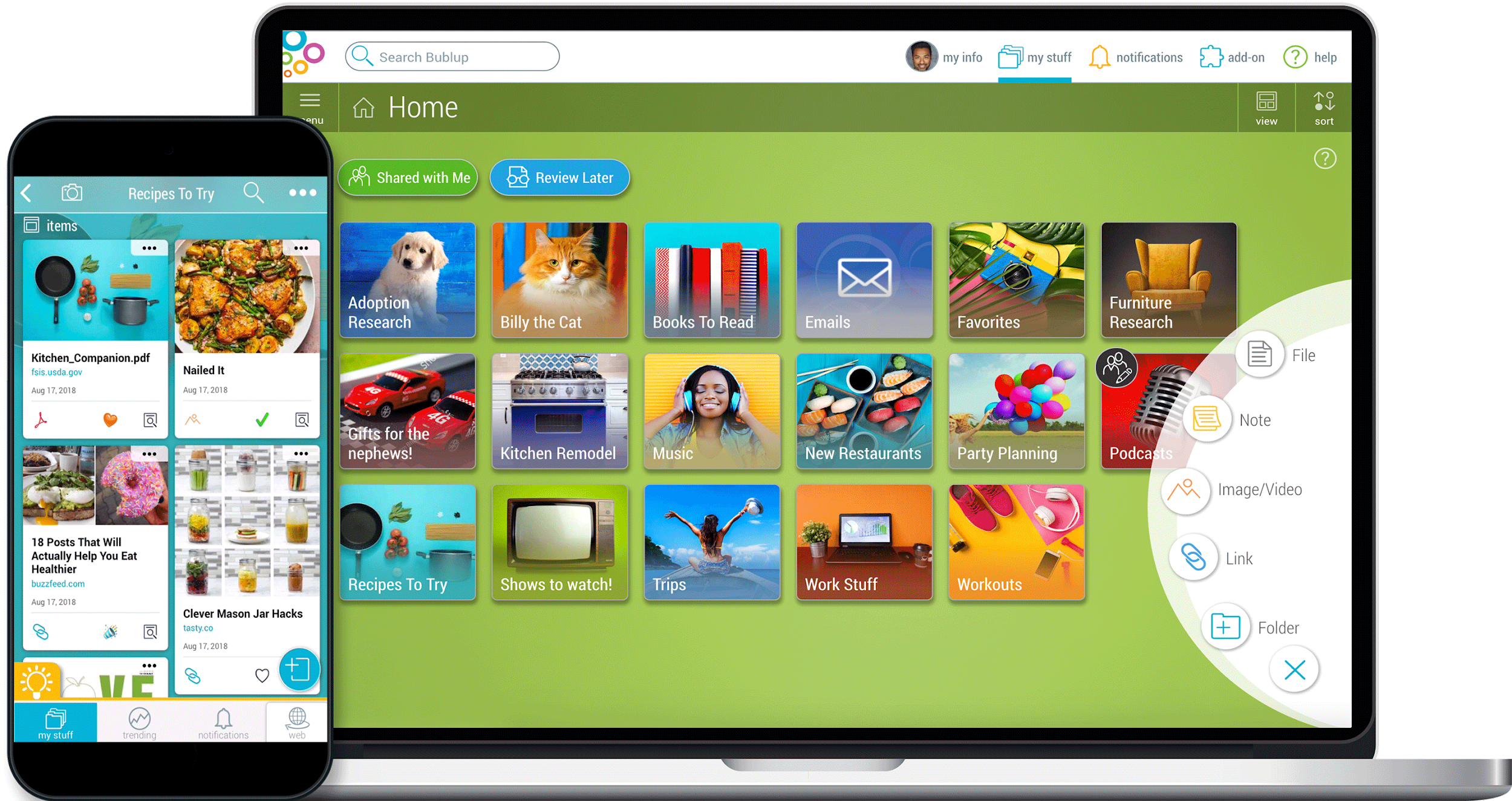 Bublup is a tool that lets you save just about anything in visual folders—PDFs, photos, videos, GIFs, notes, and more. It is one of the most versatile tools I’ve found and enables you to: