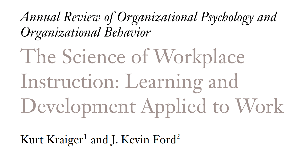 The Science of Workplace Instruction: Learning and Development Applied to Work