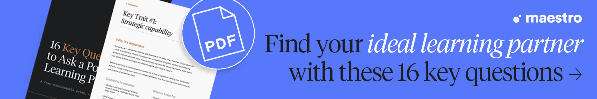 This user-friendly guide offers a simple checklist of the key questions you should ask potential learning partners, plus tips for what to listen for to evaluate fit. Vet for key traits such as strategic capabilities, innovation, operational excellence, and values alignment. Download for free »