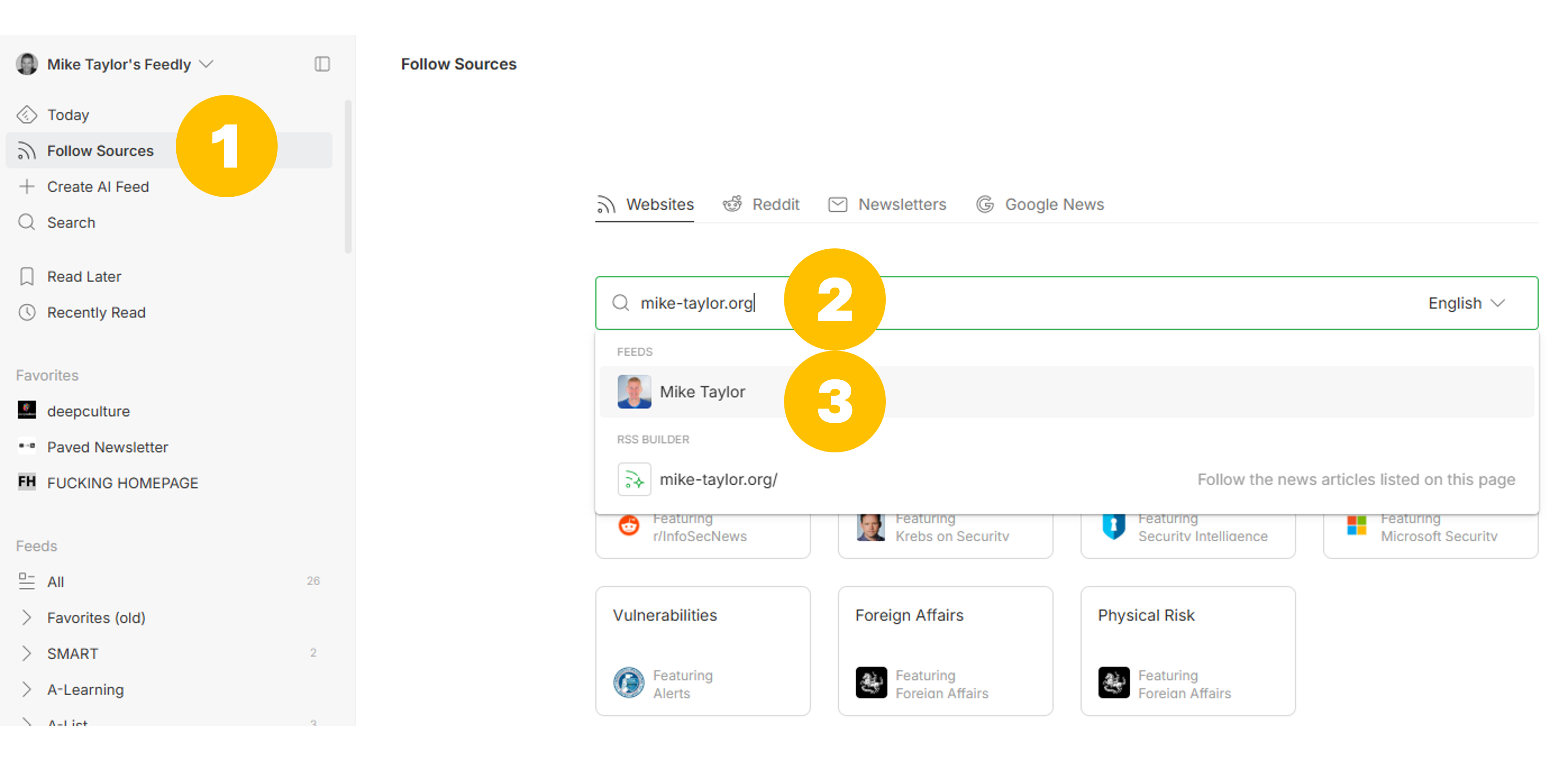 In your reader’s search bar, type the name of a site you love. Or paste the full URL. The reader will find the feed automatically.